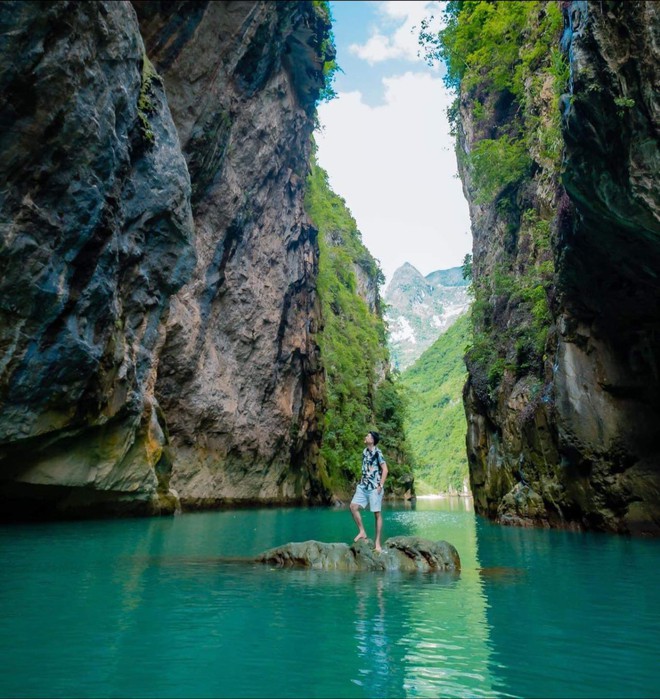 Sông Nho Quế xanh biếc được bao quanh bởi núi non hùng vĩ. (Ảnh: Đỗ Khánh Nhi Bình).