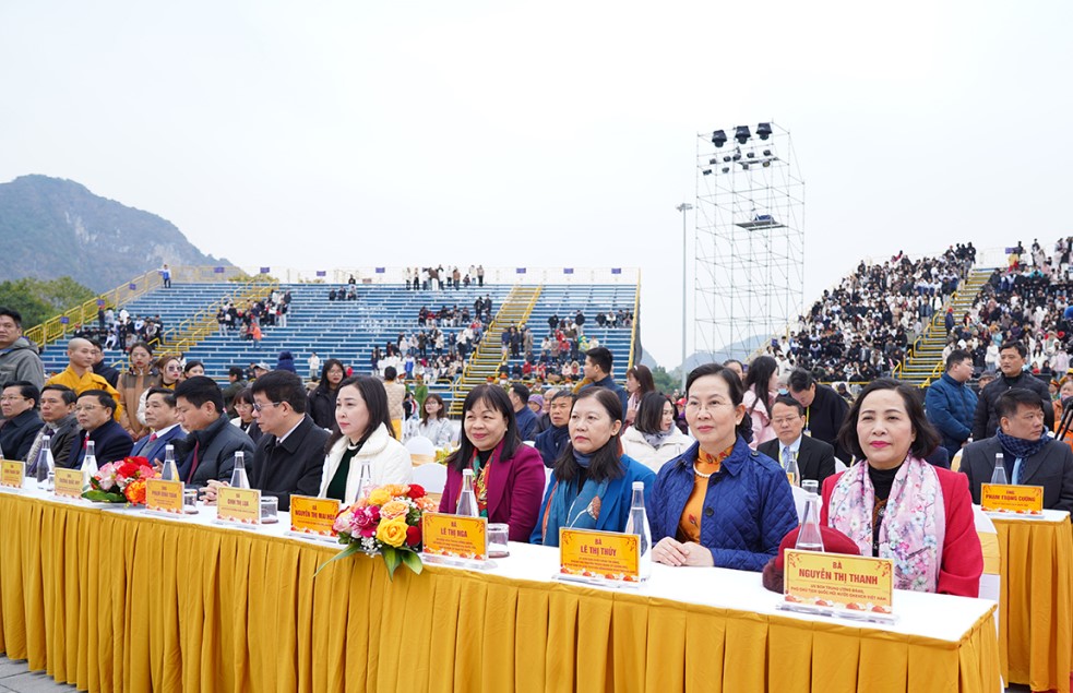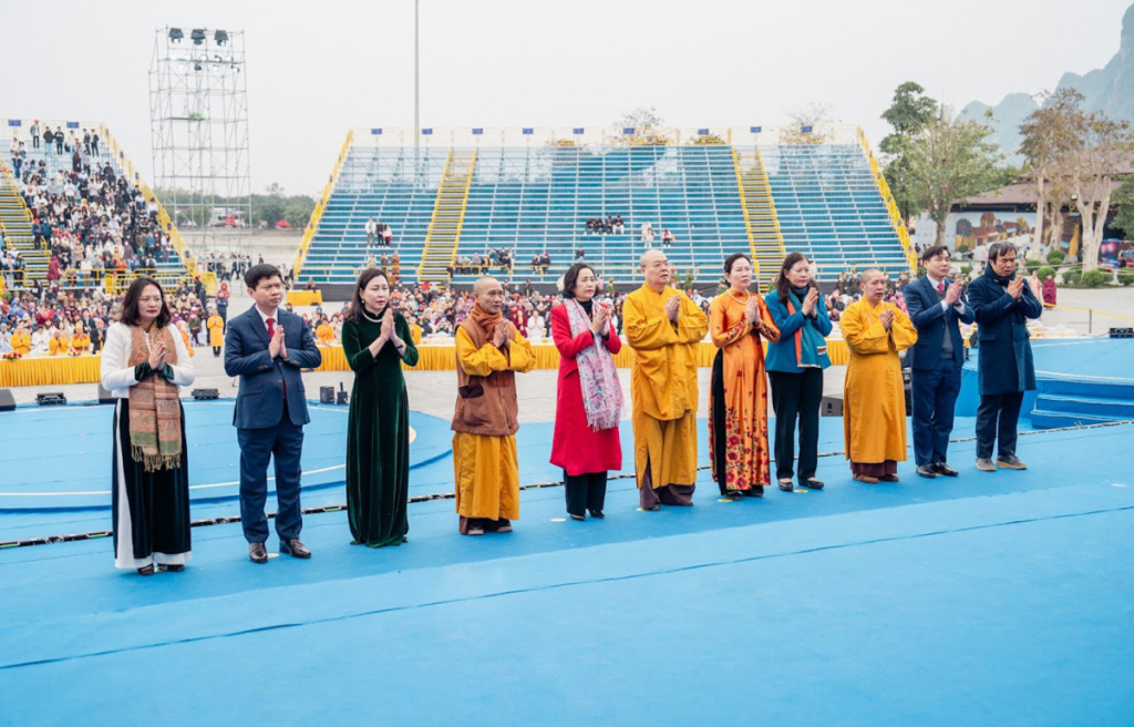 Về phía tỉnh Hà Nam có các đồng chí: Lê Thị Thủy, Ủy viên Trung ương Đảng, Phó Bí thư Chuyên trách Đảng ủy Chính phủ, Bí thư Tỉnh ủy, Chủ tịch HĐND tỉnh; Đinh Thị Lụa, Phó Bí thư Thường trực Tỉnh ủy; Trương Quốc Huy, Phó Bí thư Tỉnh ủy, Chủ tịch UBND tỉnh, Trưởng Đoàn đại biểu Quốc hội tỉnh; các đồng chí Ủy viên Ban Thường vụ Tỉnh ủy, lãnh đạo HĐND, UBND tỉnh, Ủy ban MTTQ tỉnh; lãnh đạo thị xã Kim Bảng; các chư tôn đức Ban Trị sự Giáo hội Phật giáo tỉnh Hà Nam, các tăng ni, Phật tử cùng đông đảo nhân dân và du khách.