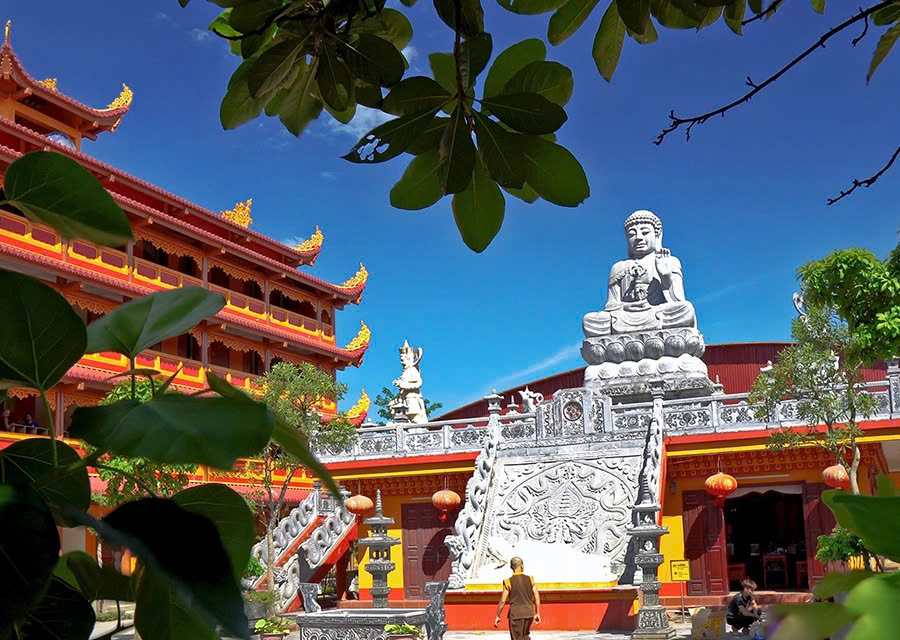 Đến vãn cảnh chùa, bạn có thể gặp được rất nhiều góc check in đẹp mê. Dù đã qua Rằm tháng Giêng nhưng vẫn có rất nhiều người đến vãn cảnh và xin lộc đầu năm tại chùa. Bạn cũng sẽ gặp rất nhiều “nàng thơ áo dài” đến chùa ghi lại những khoảnh khắc đẹp đầu xuân mới. Chùa có rất nhiều không gian đẹp, nên thơ, đặc biệt là hồ cá Koi thu hút sự quan tâm của nhiều du khách
