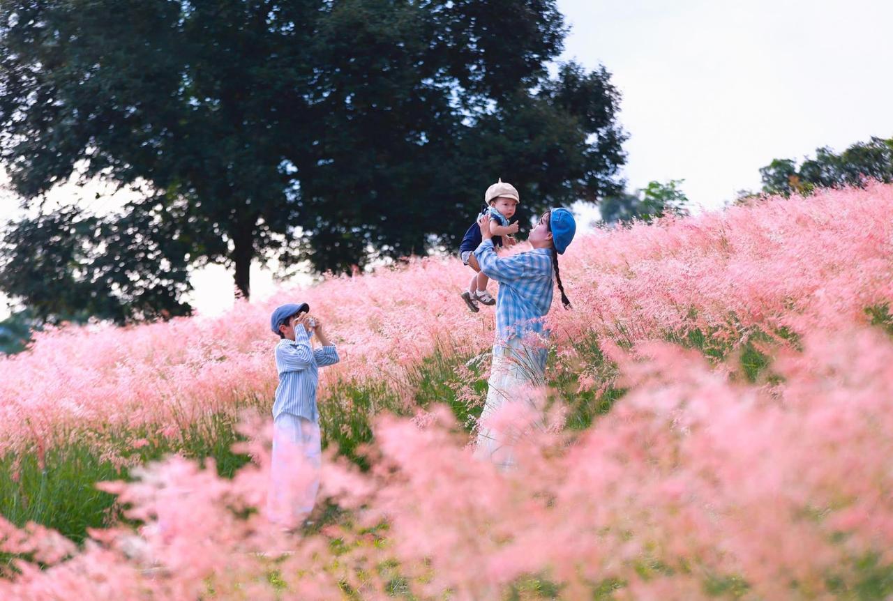Với sắc hồng rực rỡ trải dài trên đồi, đồi cỏ hồng Mộc Châu mang đến khung cảnh như phim Hàn, khiến du khách mê mẩn, thích thú check-in và thư giãn.