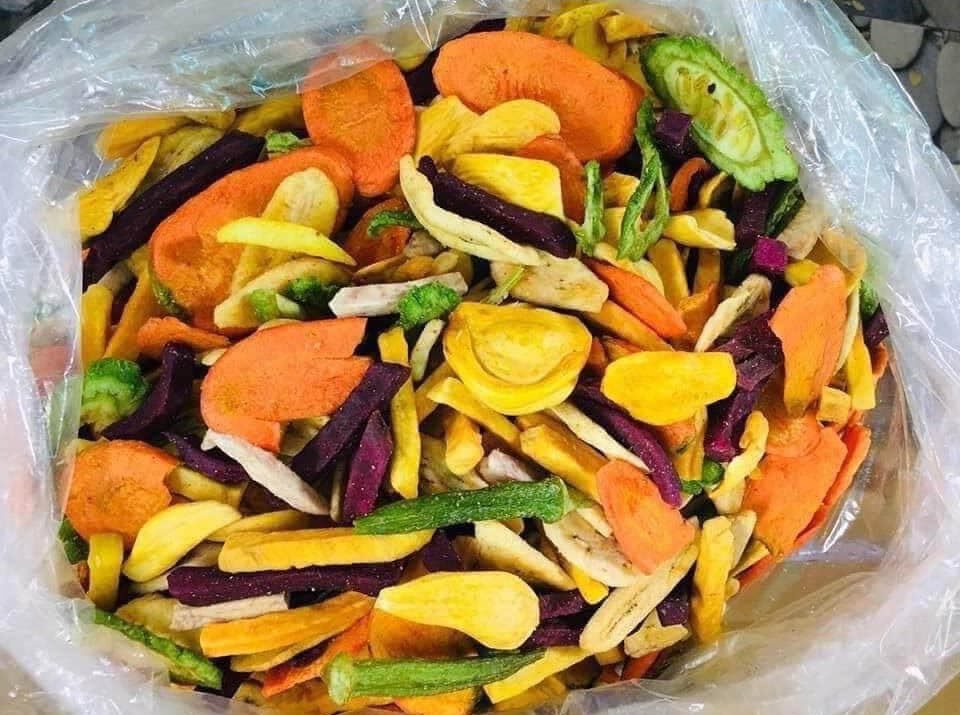 Ngoài những món mứt dẻo thơm, Đà Lạt ngoài trái cây còn nổi tiếng với những nông trường trồng rau củ sạch. Cũng nhờ thế mà người dân nơi đây làm ra món rau củ quả sấy – món ăn đơn giản nhưng tạo ra nét đặc trưng cho vùng miền này và vẫn có thể giới thiệu tới du khách trong, ngoài nước đặc sản được chế biến từ sự sáng tạo. Vì thế, khi du lịch tới Đà Lạt, hãy nhớ mua rau củ quả sấy làm quà cho người nhà. Vừa dễ bảo quản, dễ mang theo ngay cả khi đi đường dài; chưa kể, hạn sử dụng của loại đặc sản này cũng khá lâu và chi phí hợp lý, không quá đắt đỏ.